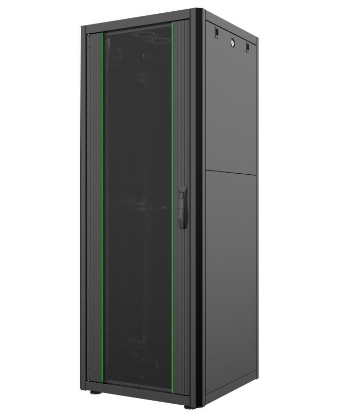 MIRSAN Szafa teleinformatyczna GTN 19″ 42U o wymiarach 600×600 mm, w kolorze czarnym, posiada jednoskrzydłowe drzwi szklane z przodu i pełne metalowe drzwi z tyłu. Idealna do większych instalacji IT, zapewnia ochronę sprzętu oraz estetyczny wygląd.
