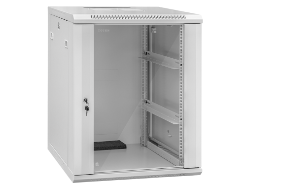 TOTEN Szafa wisząca Rack 19″ W2 18U o wymiarach 600×600 mm, w kolorze szarym, posiada przeszklone drzwi zapewniające wgląd do wnętrza. Przeznaczona do niewielkich instalacji IT, umożliwia bezpieczny montaż i wygodny dostęp do sprzętu sieciowego.
