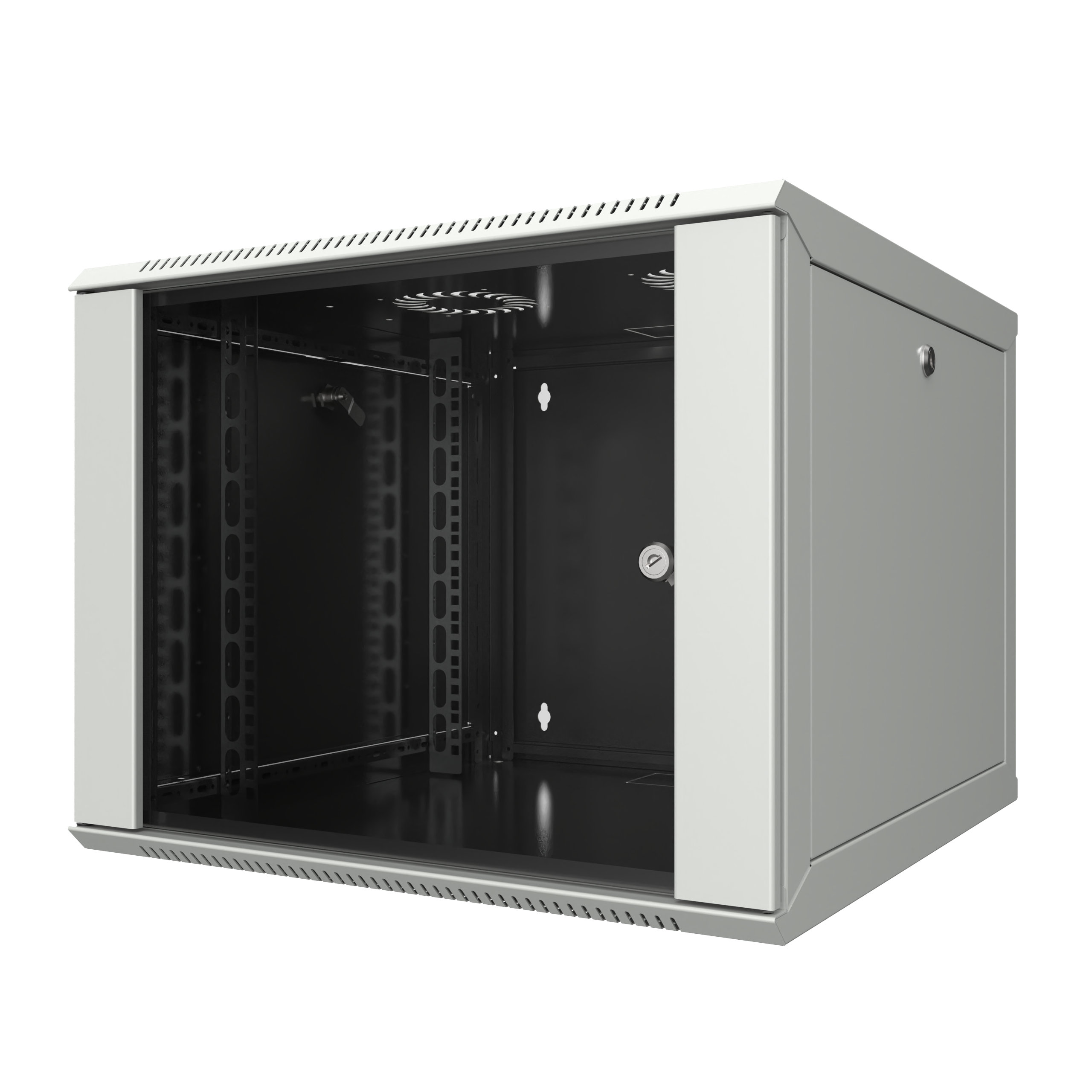 MIRSAN Szafa wisząca WTC COM-BOX 19″ 12U o wymiarach 565×600 mm, w kolorze szarym, wyposażona jest w jednoskrzydłowe drzwi szklane. Stanowi solidne i estetyczne rozwiązanie dla kompaktowych instalacji IT i telekomunikacyjnych.